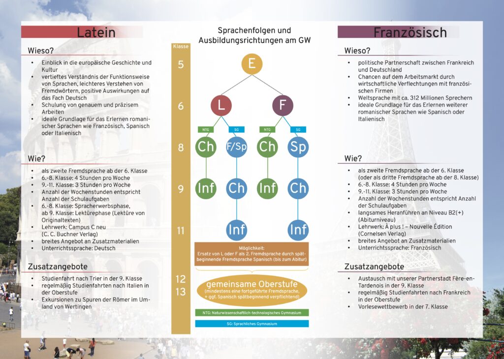 Am Gymnasium Wertingen gibt es grundsätzlich zwei Möglichkeiten, das Französische zu erlernen: als zweite Fremdsprache oder als dritte.